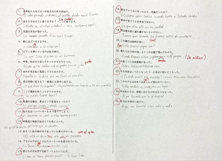 で、模範解答を見て思いましたが、20番の「子供の頃」は線過去を使わず"de niños"でも良いんですね。とても言いやすい。